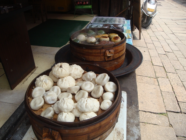e questi invece sono i baozi, panini ripieni di carne o verdure cotti al vapore, di un biancore candido e morbidosi