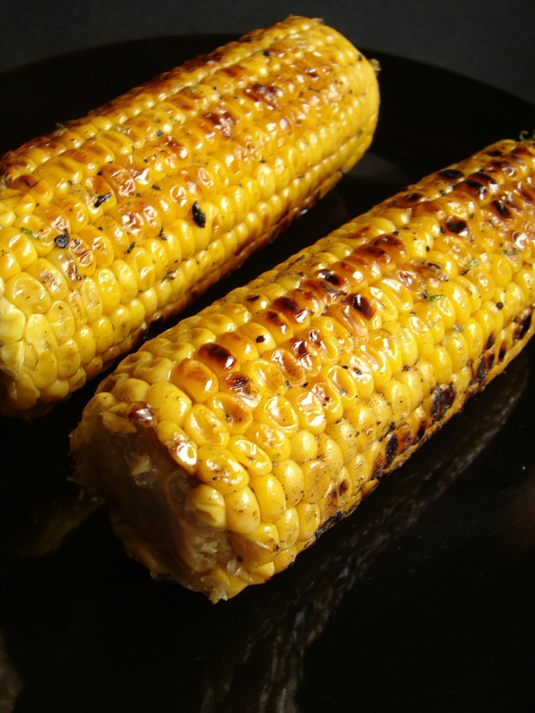 Queste pannocchie viste in una delle ormai rare visite al super mi hanno fatto pensare a come spesso le si vedono nei barbecue americani alla tv piuttosto che nei blog o riviste e mi son chiesta come potevano essere ……… a dir il vero poi ho scoperto che anche qui da noi si mangiano, in realtà ero io che non le avevo mai mangiate, leggendo un po’ in giro nel web ho visto che si mangiano semplicemente bollite con un po’ di sale oppure spennellate con burro aromatizzato a piacere e poi abbrustolite sul barbecue o in mancanza del medesimo, alla piastra…..ma forse si potrebbe anche sotto il grill….sarà per una prossima volta, il fatto però è che io pensavo piuttosto ingenuamente di tagliarle a fette, invece l’unico modo è mettere da parte il bon ton e usare mani e denti….