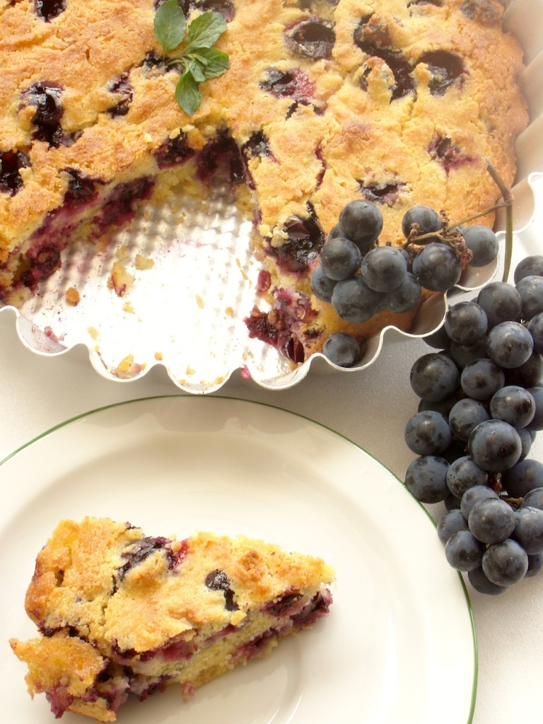 Per rimanere ancora in vacanza negli USA almeno con la fantasia ho scelto di fare un “pan-dolce” rustico in realtà di dolce non ve ne è molto dato che si usa solo un cucchiaio di zucchero tant’è vero che non è un cake ma un bread ed esattamente un cornbread al quale però io ho sostituito il ripieno di chicchi di mais con chicchi d’uva fragola.