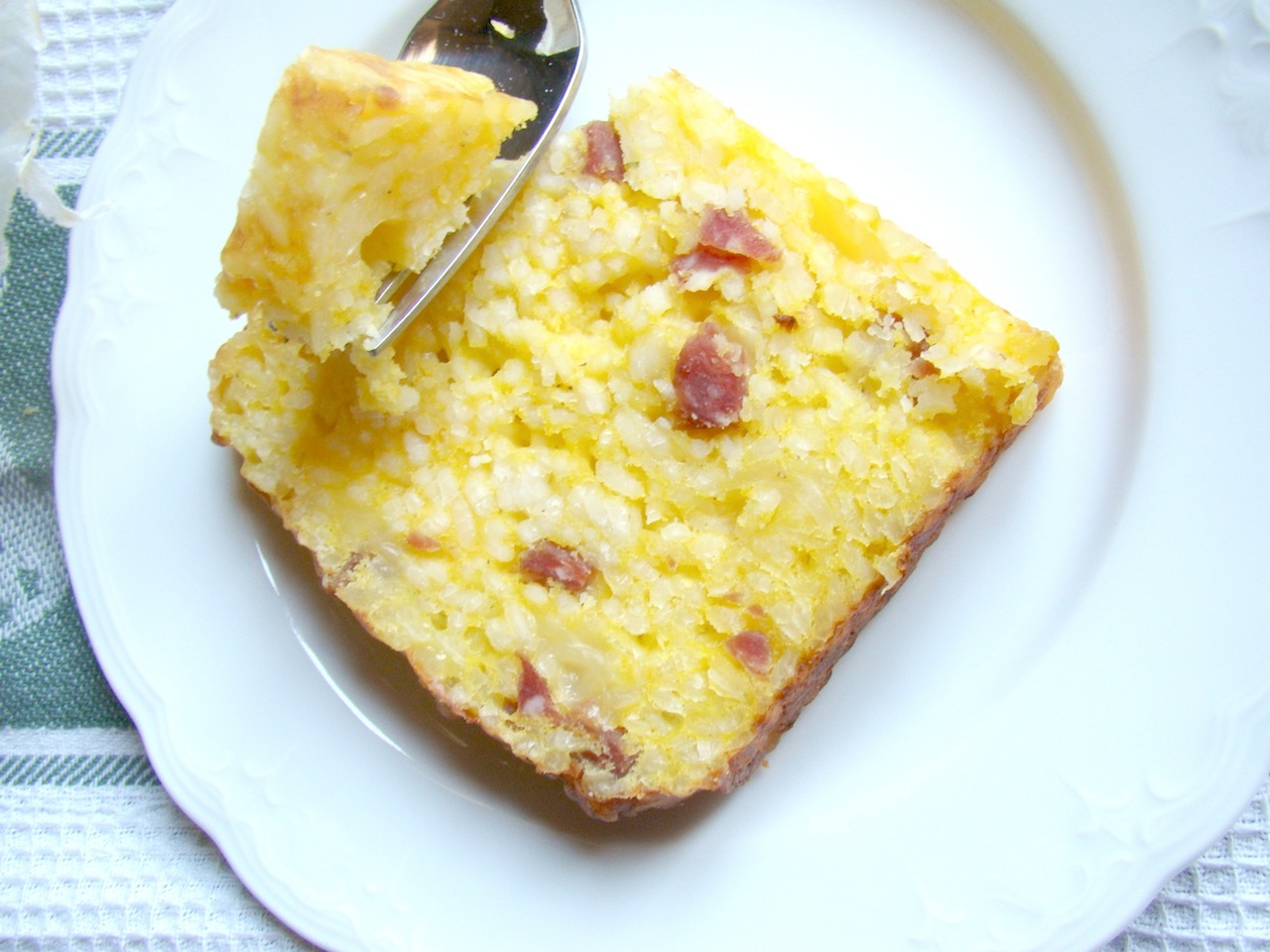 Sabato sera avendo amici a cena tra cui anche lei ho quindi pianificato un menù gluten free, tra cui questo sformato di riso, reso saporito aggiungendo salamino tipo strolghino di culatello rigorosamente senza glutine e scamorza affumicata.