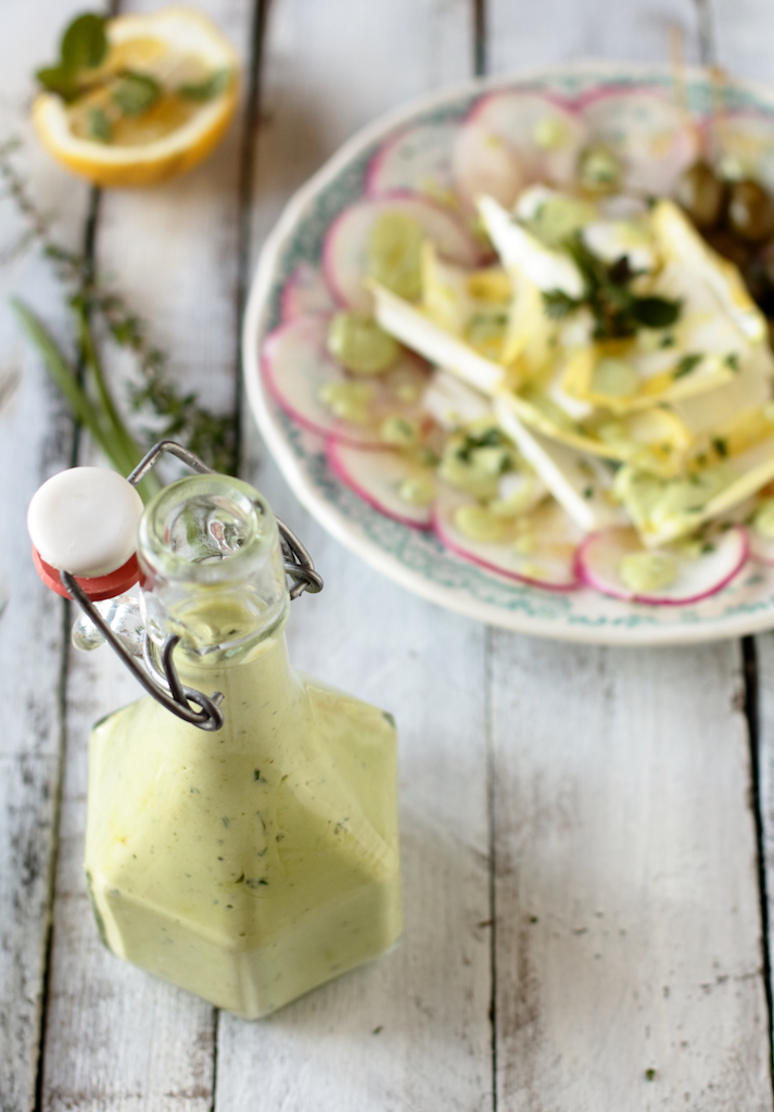 Ho fatto questo condimento per alternare il piú classico e sempre buono olio che é perfetto per le insalate prevalentemente a foglia. Per insalate con verdure croccanti come finocchio, retiche, indivia cipolla rossa o pezzettoni di verdure cotte come patate carciofi broccoli ecc. mi piace usare un condimento con piú spessore e questo dressing all’avocado é perfetto per questo uso.
